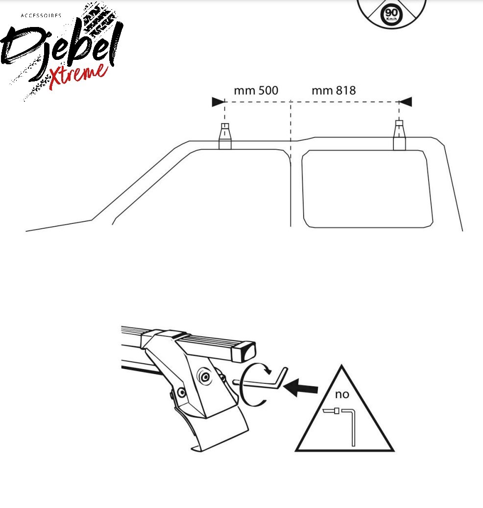 Barre de toit en alumunium pattes de fixation à double pinces.