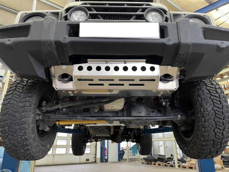 Les plaques de protection sont en aluminium de 6 mm. Le montage s’effectue aux points d’origine du véhicule.