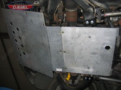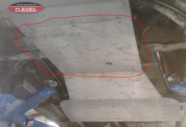 Blindage de boite de vitesses et de transfert réalisé dans une plaque d’aluminium de 8 mm découpé au LAZER (pas d’angle vifs) ferrures en acier,protection anticorrosion par électrozingage blindage de grande dimension protégeant intégralement la boite de vitesses et de transfert se raccorde au blindage boite de vitesse permettant de faire un sky complet monobloc se monte obligatoirement avec le blindage référence BLAVTO05 fourni avec kit boulonnerie inox et plan de montage.