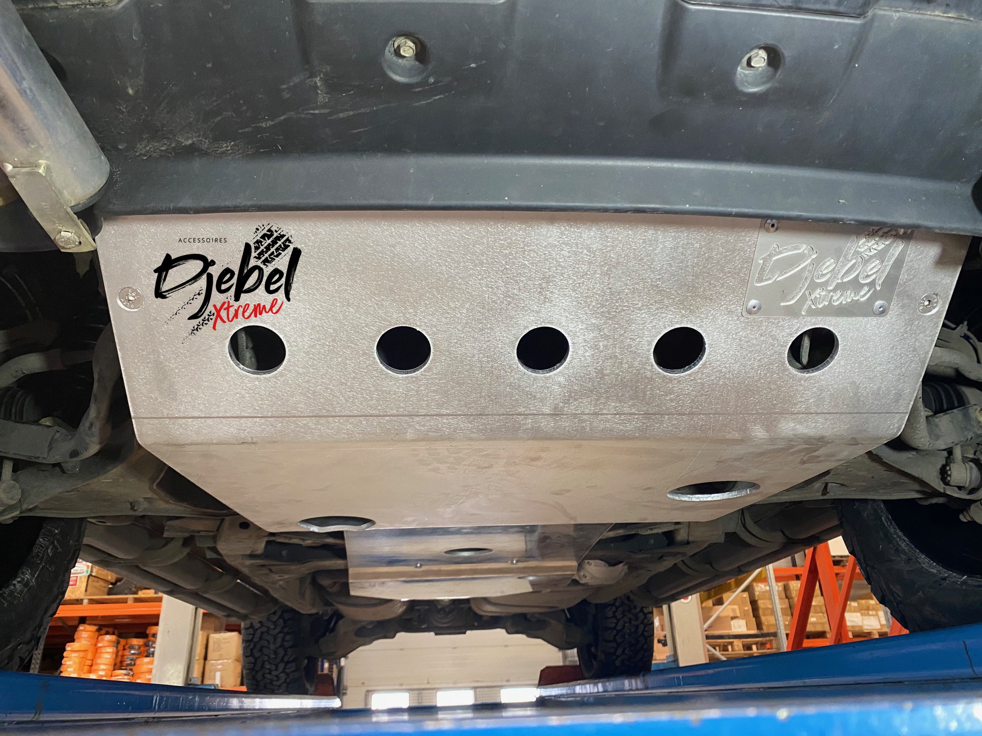 Blindage avant réalisé dans une plaque d’aluminium de 8 mm découpé au LAZER (pas d’angle vifs) ferrures en acier,