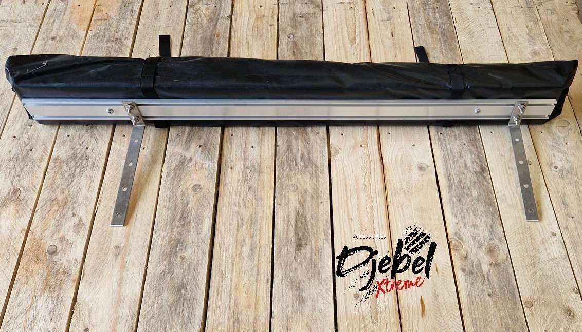 se reprend sur la réglette en aluminium longueur 110 cm qui se fixe sur la galerie ou les barres de toit de votre véhicule.