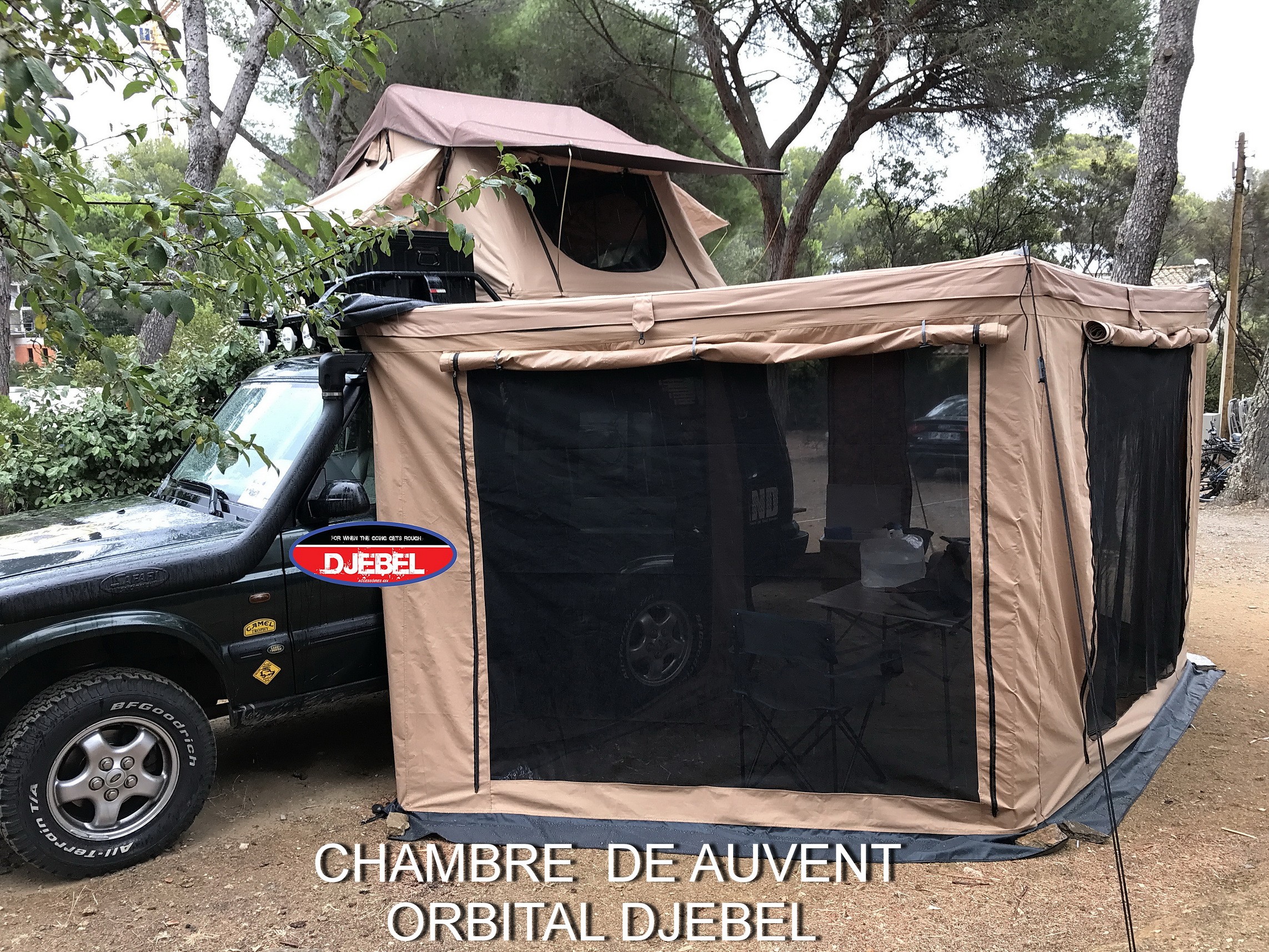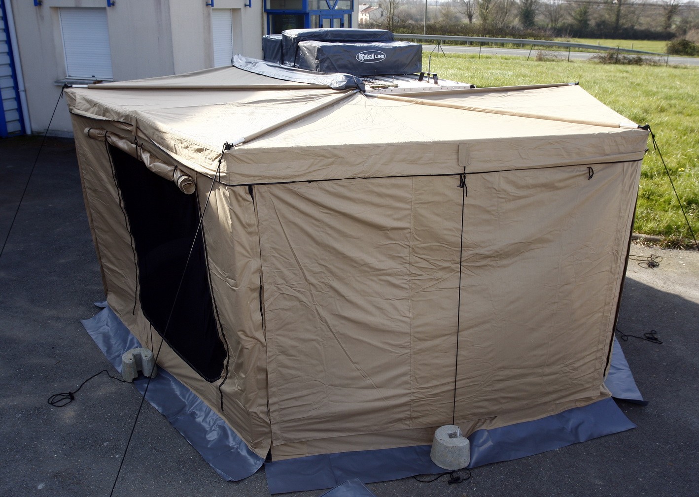 – Le système de tension de l’auvent autorise un montage sans les cordes de haubanages (sauf par vent fort)