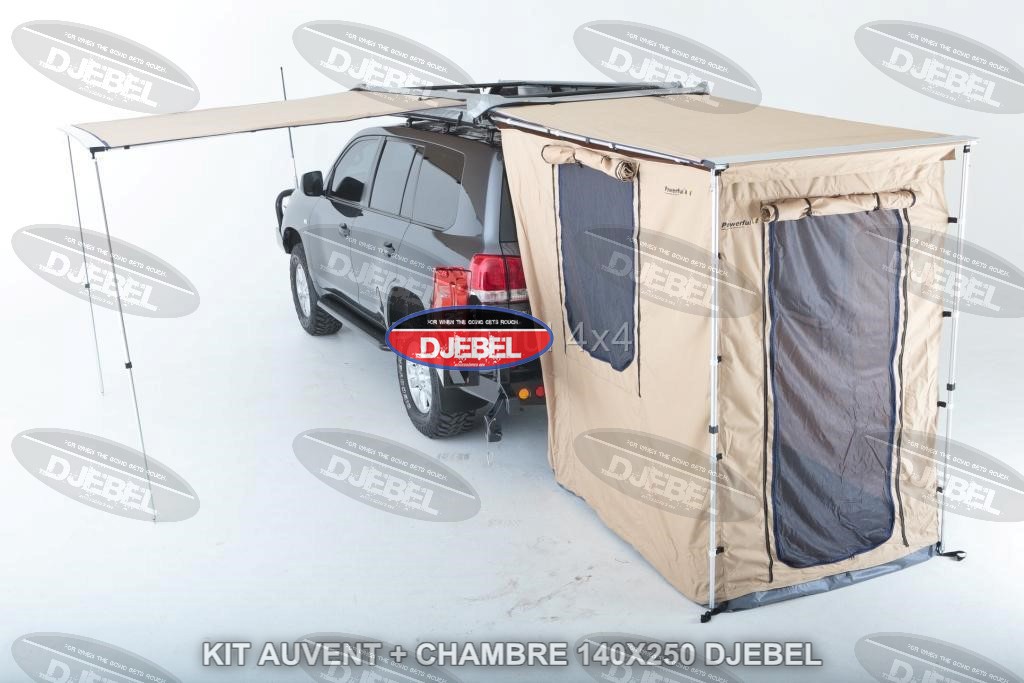 Les AUVENTS  DJEBEL LINE représentent actuellement le meilleure rapport qualité prix du marché. Equipé d’un toit en polyester 100% étanche, d’une armature en aluminium,d’un système de pliage astucieux et entièrement étanche le modèle DJL-RT140A s’installe en position  latérale OU ARRIERE