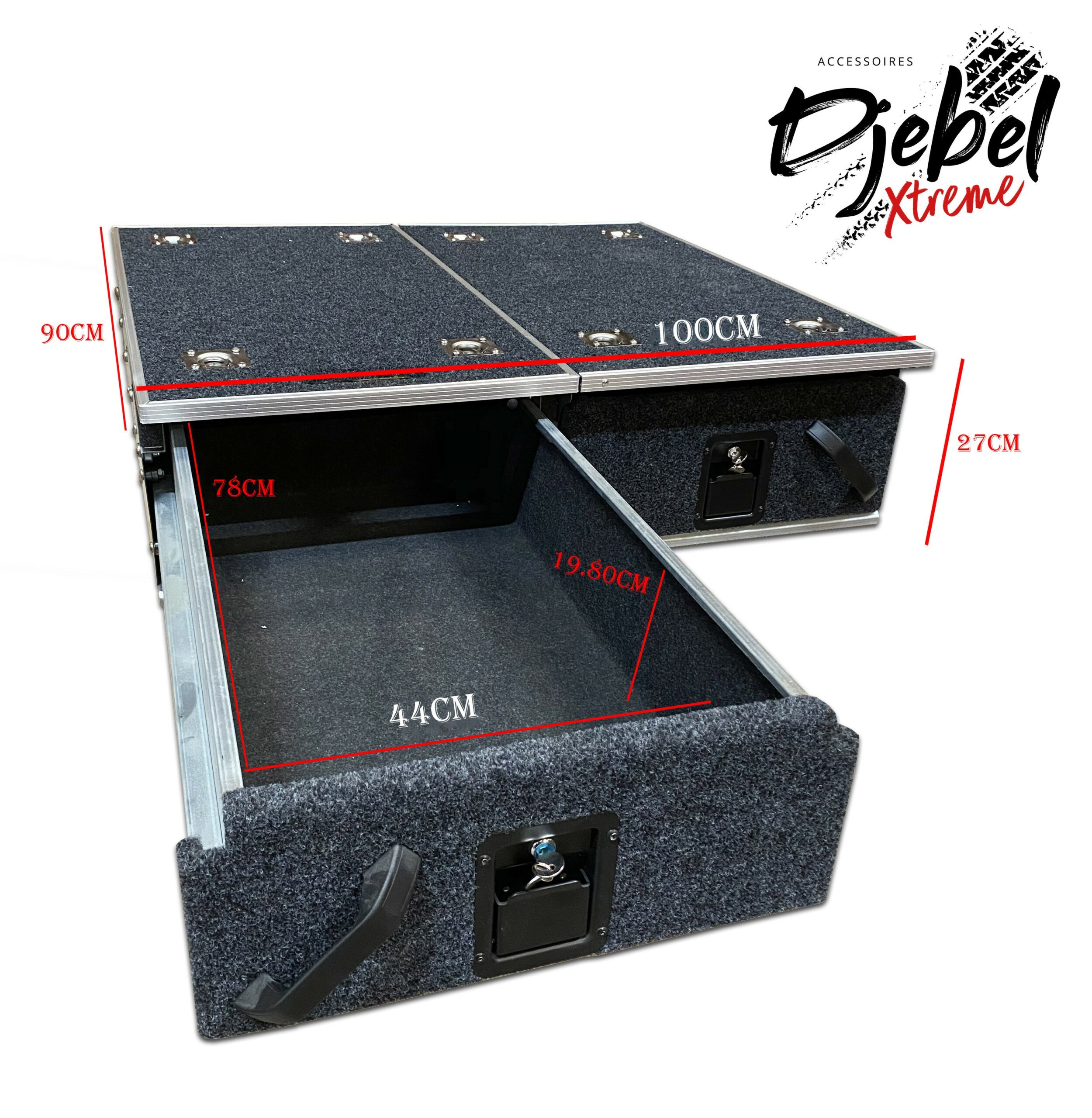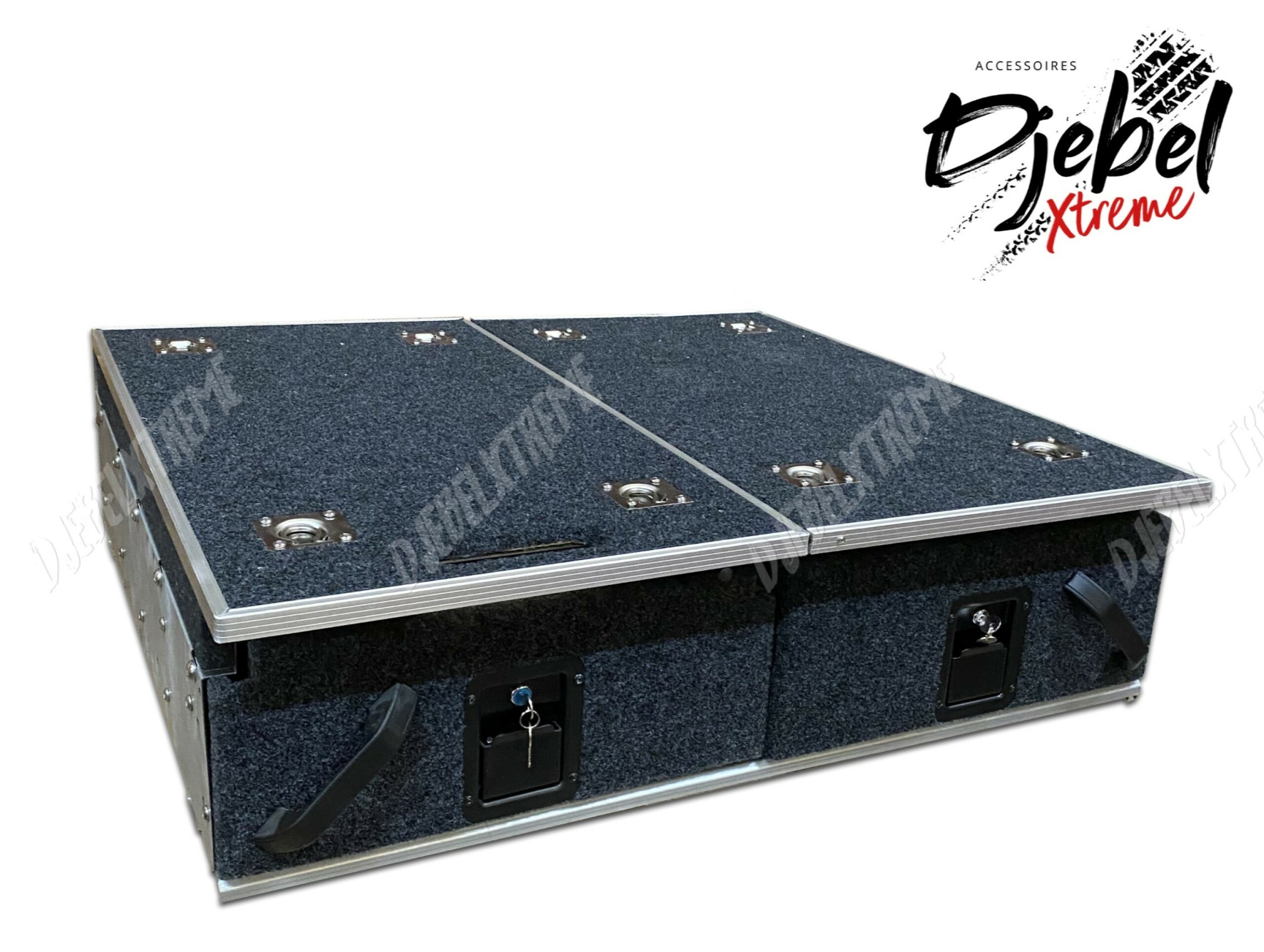 La gamme de tiroirs DJEBEL est conçue pour s’adapter à une multitude de véhicules 4×4 mais également sur véhicules classiques et pick-up.
