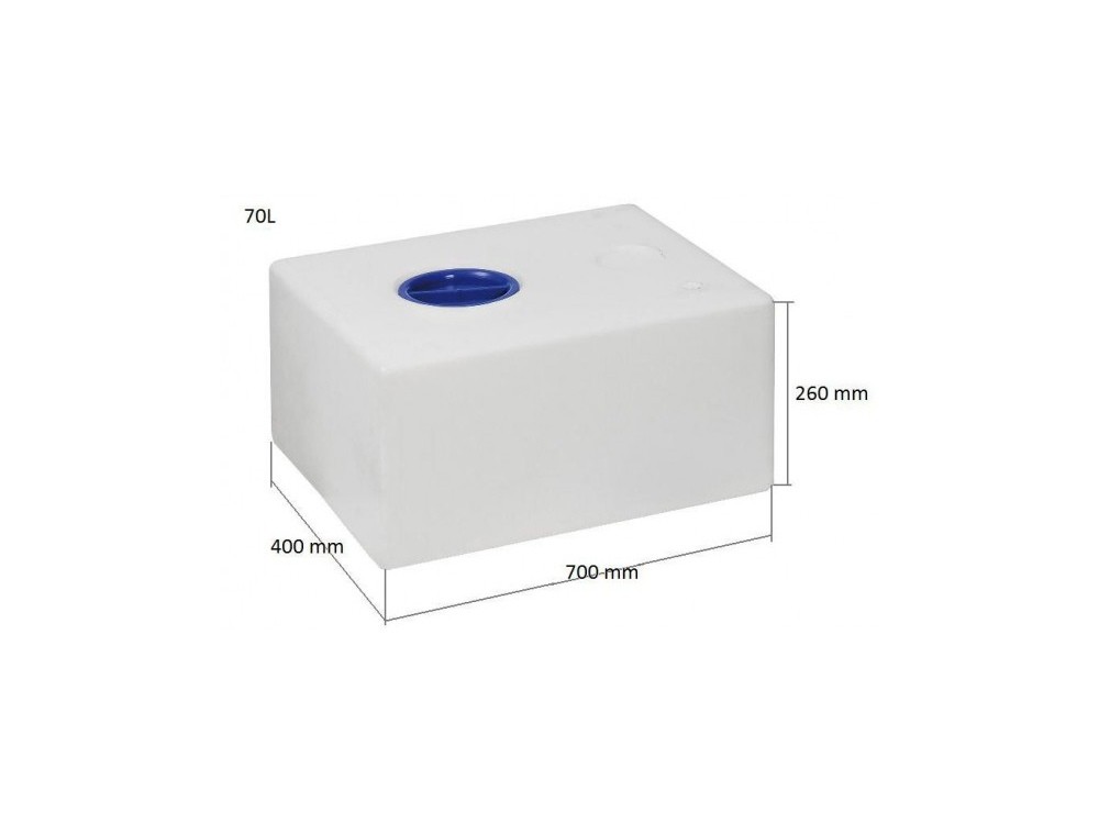 70 litres : 700 x 400 Hauteur 260 mm : raccords filetés femelle, entrées 4 x 1″1/4 sorties 4 x 1/2″ (évent 1/2”)