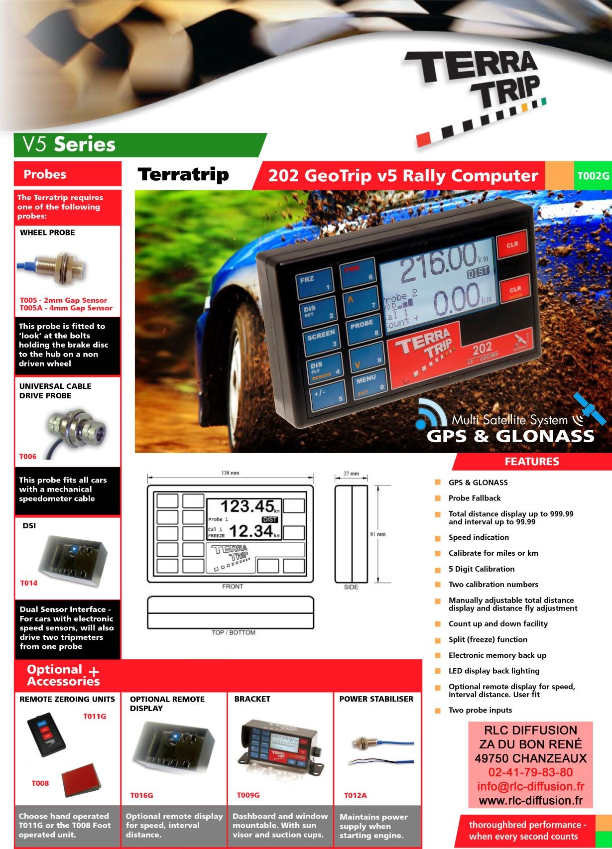 Le 202 Geotrip propose de nouvelles fonctions comme le chronométrage des accélérations /décélérations (0-60,0-100…) jusqu’a 8 resultats peuvent etre enregistrés et lus en temps réel.Un afficheur Déporté optionnel peut etre utilisé pour visualiser distance partielle, Vitesse ou vitesse moyenne, Il est également équipée de 7 LEDs indiquant au pilote son avance ou son retard (idéal en rallye de régularité).Une commande de remise à Zéro à distance est aussi disponible en option : remise à zéro à la main ou remise à zéro au pied.