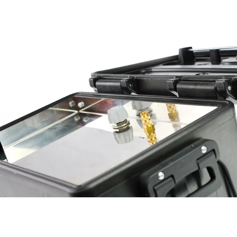 Grâce à ce chauffe-eau mobile vous n’avez pas besoin d’effectuer une installation fixe dans votre van ou fourgon aménagé, afin de prendre une douche chaude en plein air et chauffer votre eau. Le modèle Pundmann Therm box AIR peut se combiner à un chauffage à air pulsé Autoterm. Vous pouvez relier votre chauffage au chauffe-eau à l’aide d’un tuyau d’air de ø 90 mm. L’appareil utilise la chaleur du chauffage pour chauffer l’eau de votre réservoir intégré. Avec une contenance de 6 litres, cet équipement peut être connecté et utilisé sans nécessiter d’installation permanente. Son rendement est garanti par une résistance chauffante de 200 W, et sa fabrication en acier inoxydable haut de gamme répond aux normes relatives à l’eau potable. Fonctionne en 12 V via une prise Anderson.